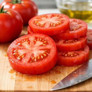 - Keep Tomato Slices Uniform Thickness – A sharp serrated knife cuts through tomatoes cleanly without crushing them. Uniform thickness ensures even marinade penetration and consistent bites throughout.