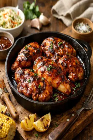 Quick stovetop barbecue chicken ready in 30 minutes. Tender thighs glazed in caramelized sauce using warm spices and pantry ingredients for weeknight dinners.