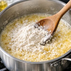 Sprinkle your measured flour directly over the butter-fat mixture and stir constantly for 1-2 minutes. This step is non-negotiable for texture. You’re cooking out the raw flour taste while the fat coats each flour granule, preventing lumps when liquid hits it. The mixture will look like wet sand—that’s exactly right.