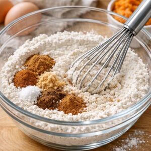 - In a medium mixing bowl, whisk together the flour, baking soda, cinnamon, ginger, nutmeg, allspice, and salt. Whisk for about 30 seconds to fully combine—this distributes the leavening agent and spices evenly throughout the flour, ensuring consistent flavor in every bite. Set this bowl aside and resist the urge to touch it again. This is our "dry team," and it's ready to go.
