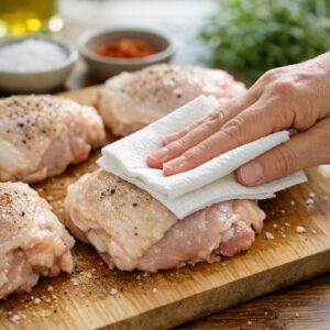 - Don't skip patting the chicken dry - This single step makes the difference between steamed and seared chicken. Use paper towels and be generous with your patting